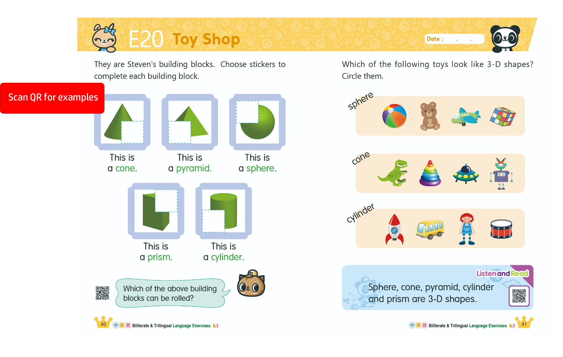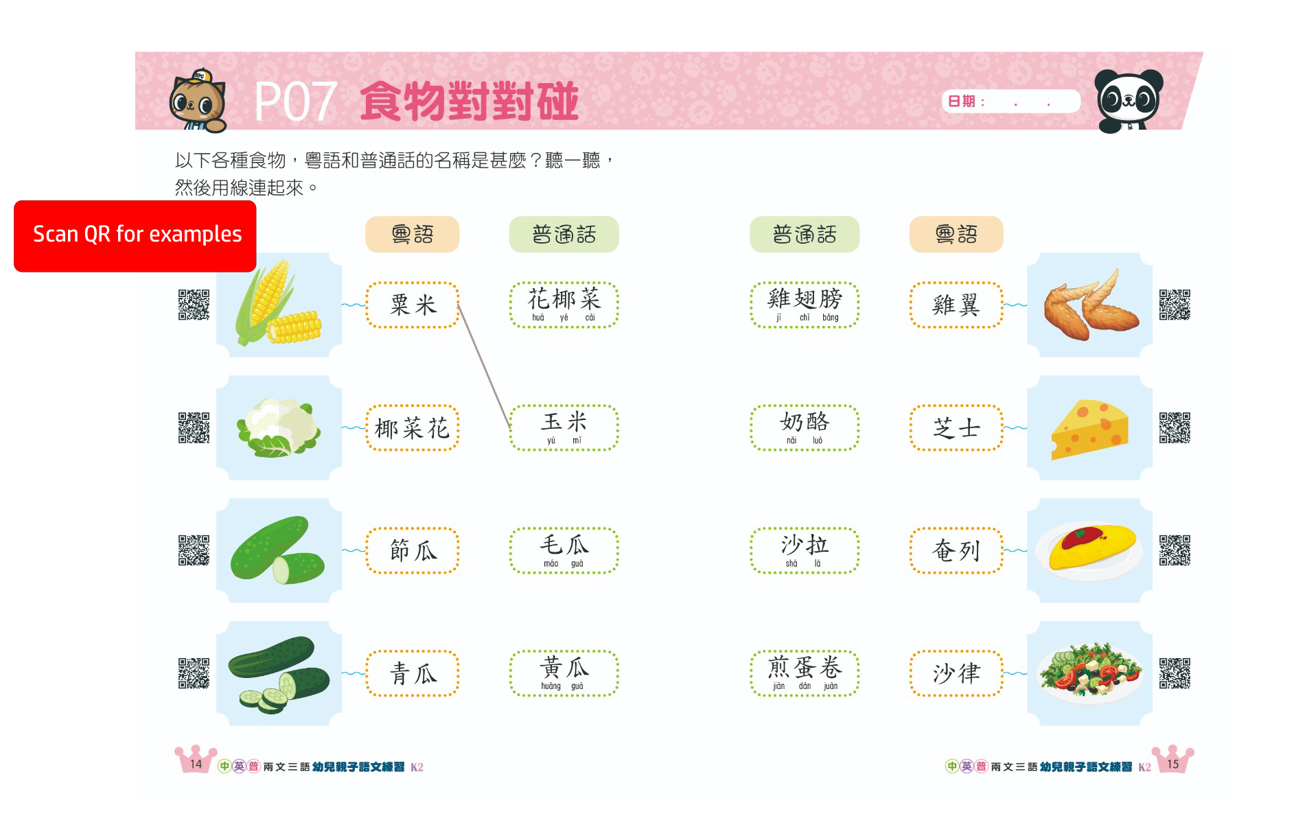 - Audio enabled via QR Codes to help create context and improve listening and reading skills in Cantonese, English and Mandarin.