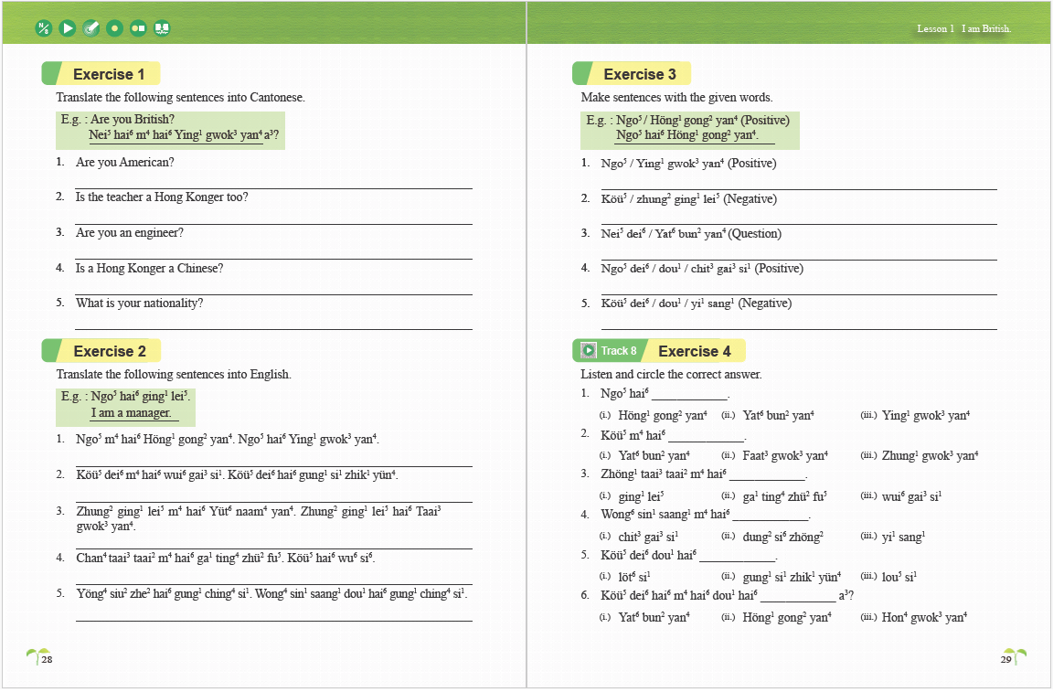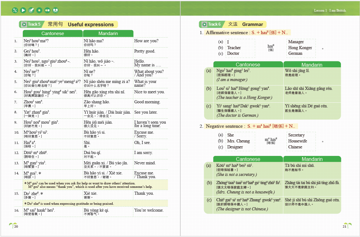 Both Cantonese and Mandarin (including pinyin) are put forward, enabling more in-depth learning about the Chinese language. Illustrations are highly localized and engaging which make your studies even more enjoyable.