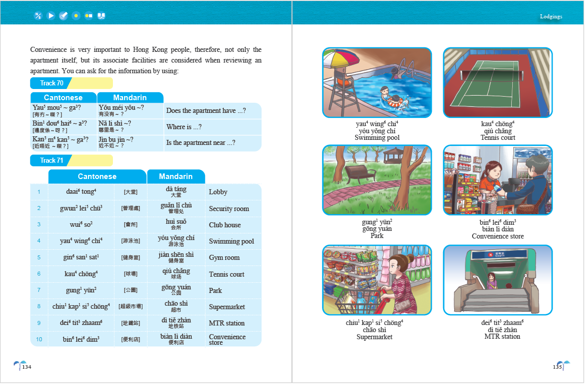 - Both Cantonese and Mandarin (including pinyin) are put forward, enabling more in-depth learning about the Chinese language. Illustrations are highly localized and engaging which makes your studies even more enjoyable.